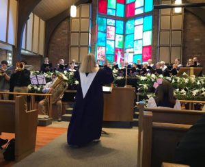 Our Traditional Worship Service begins at 8:45 am in the Sanctuary each Sunday and lasts about one hour. Together we glorify God through liturgy and music. Our choir leads the singing and typically sings the call to worship and the offertory. Our preaching team is lead by our senior pastor, but also includes retired clergy from our congregation. The sermon is the same at both the traditional and the contemporary service. We celebrate communion on the first Sunday of every month.